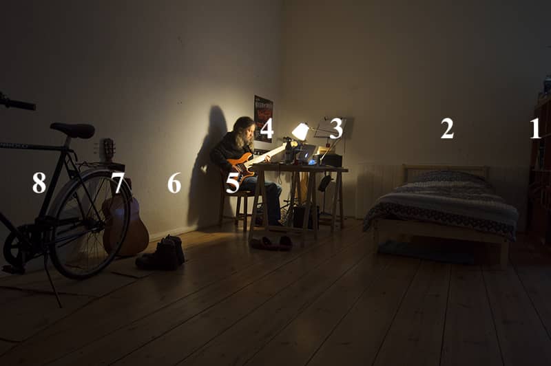 To give you a clearer idea of what such a mental journey looks like, here’s a picture of me in a Memory Palace I used to memorize some song lyrics. By following a linear path based on the location of the walls and furniture, it was easy to place associations that helped me recall the words of the song.