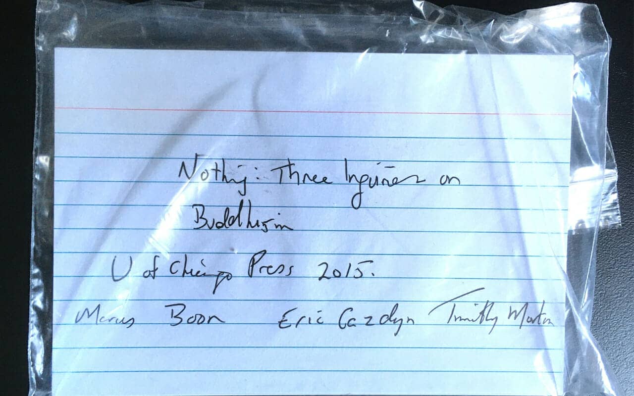 Instead, I organize my cards into shoeboxes and alphabetize them by title. So if my notes for a book called Nothing are in a plastic baggie, that will appear ahead of my notes from a book called One.