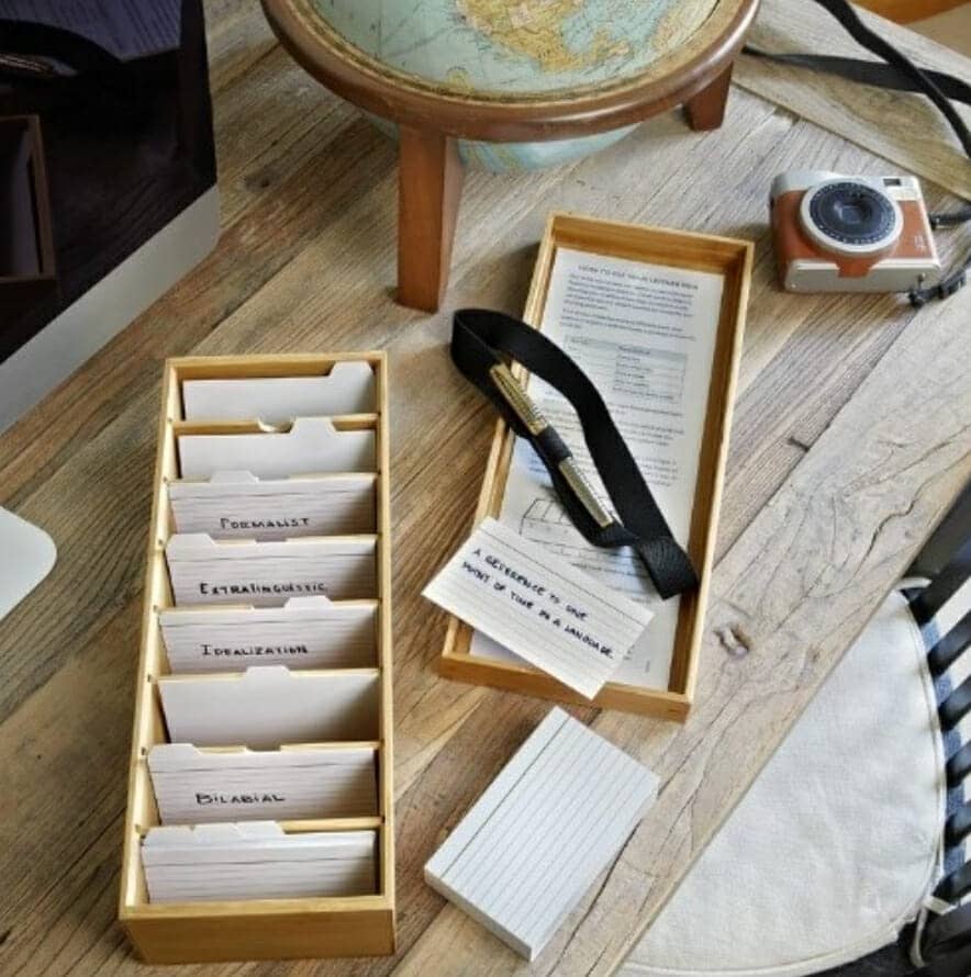 To store my many cards and harness the power of spaced repetition, I use Leitner boxes.