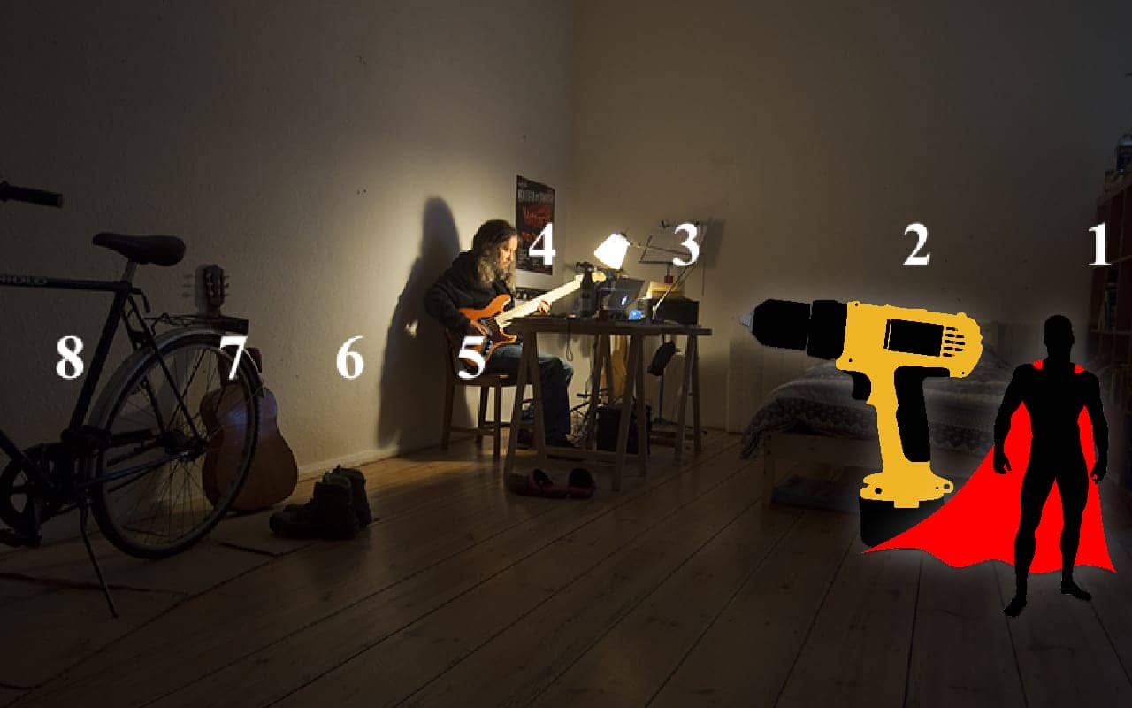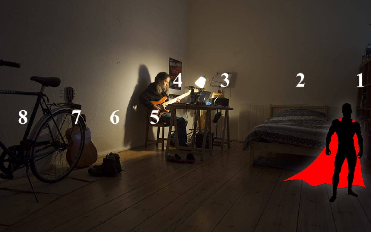 To give you a clearer idea of what such a mental journey looks like, here’s a picture of me in a Memory Palace I used to memorize some song lyrics. By following a linear path based on the location of the walls and furniture, it was easy to place associations that helped me recall the words of the song.