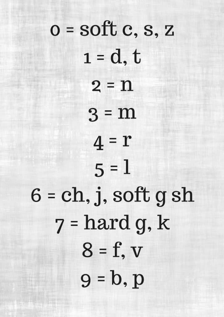 The Major System is called an “alphanumeric” technique because it helps you transform numbers into consonant sounds.