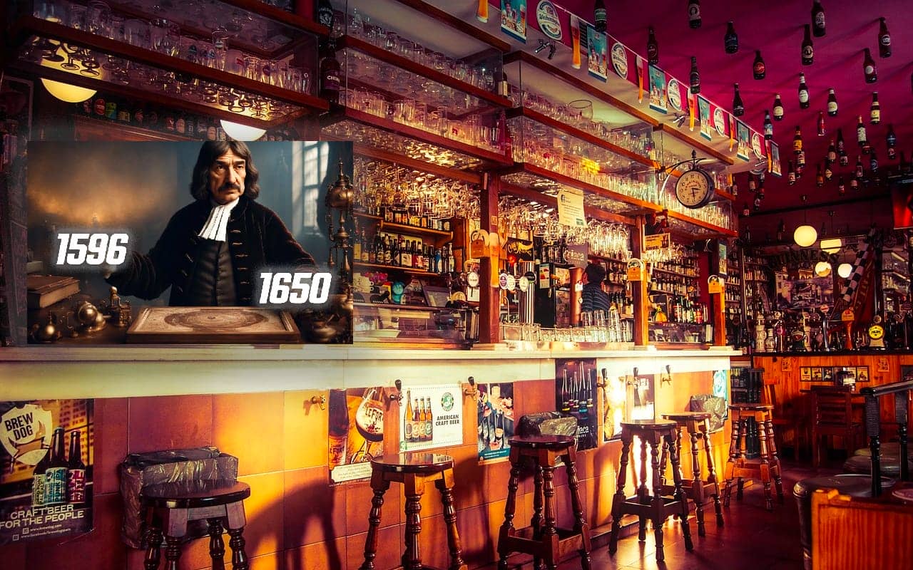 In the example above, you see Rene Descartes in a bar.